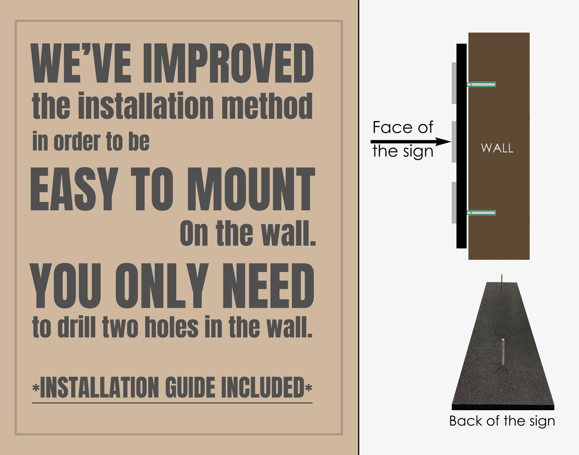 Installation facile. Il suffit de percer deux trous dans le mur.